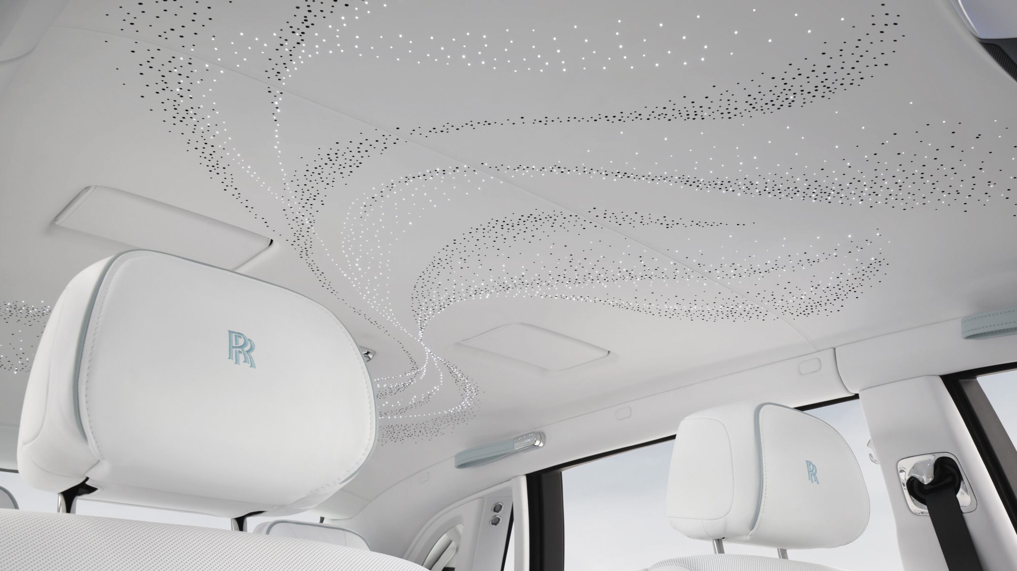 실내 공간에는 환희의 여신상의 역동적인 형태를 담은 디자인 요소들이 가득하다. 먼저, 코치 도어와 직물 시트에는 롤스로이스 역사상 가장 광범위하고 밀도 있는 자수가 적용됐다. 이 연속적인 그래픽은 실내 전체로 이어지며 장엄한 에너지로 승객들을 감싼다.